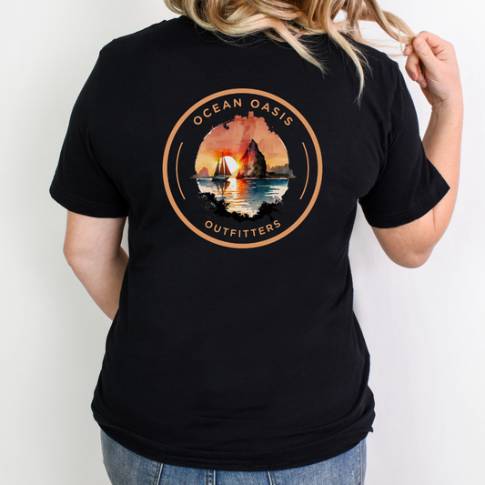 Seaside Serenity: Dive into Style with Ocean Oasis Outfitters Black Logo Tee! Bella & Canvas T-Shirt